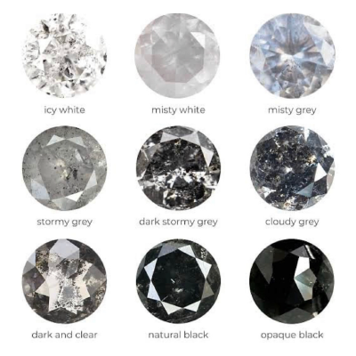 Natural black diamonds are very unusual in their characteristics in comparison to ‘normal’ diamonds. With no sparkle and lustre, these diamonds are completely opaque and come only in one colour. The black colour comes from large quantities or clouds of minute mineral inclusions such as graphite, pyrite or hematite that extend throughout the stone. They also have many fractures that are stained black or have become black as a result of graphitization. It is the concentrations of these internal features that are responsible for the colouration. The actual body colour of a natural black diamond may range from near colourless to brown.
