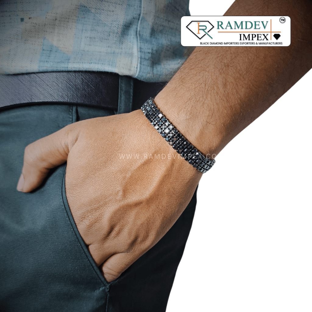 "Elevate your style with this 3 layer black diamond bracelet for men. Featuring a sleek triple-row design, it blends luxury and sophistication, making it the perfect accessory for any occasion."