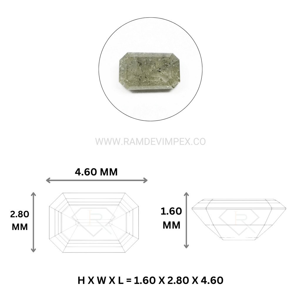 Discover the unique allure of this 0.22 carat emerald cut salt and pepper diamond. Featuring a distinctive green hue, this natural loose stone offers exceptional beauty and versatility for custom jewelry designs. Perfect for those seeking a one-of-a-kind gem with a touch of elegance.