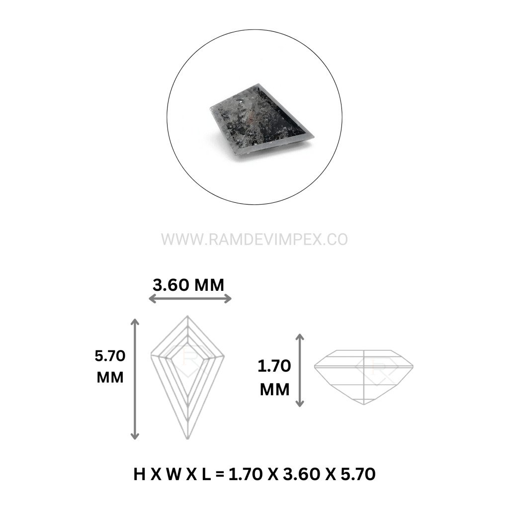 Discover the allure of our kite-shaped salt and pepper diamond. With a unique fancy grey-black color and a natural 0.22 carat weight, this loose gemstone combines elegance and distinctive charm. Perfect for custom jewelry designs or as a standout addition to any collection.