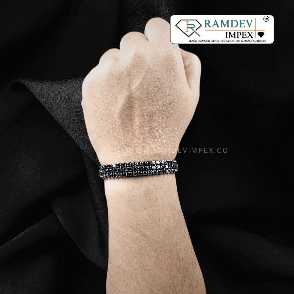 "Elevate your style with this 3 layer black diamond bracelet for men. Featuring a sleek triple-row design, it blends luxury and sophistication, making it the perfect accessory for any occasion."