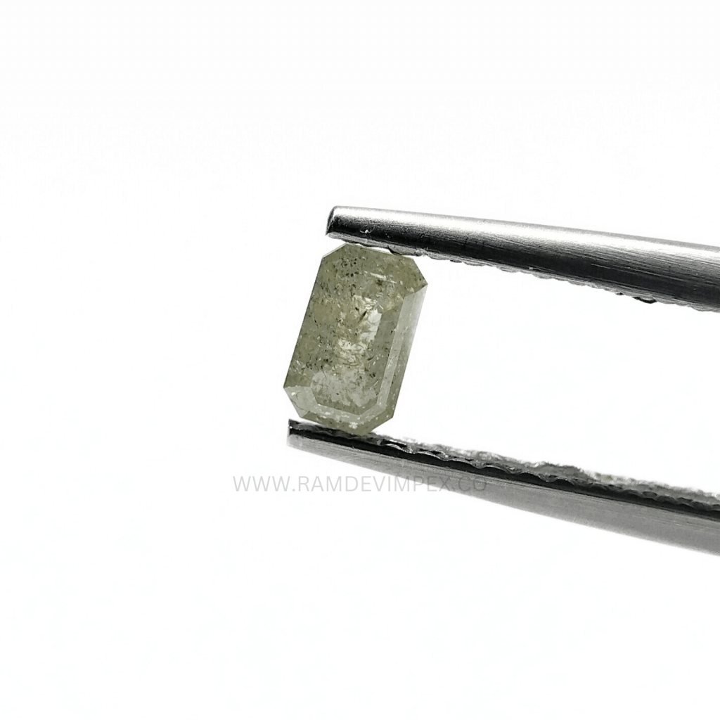 Discover the unique allure of this 0.22 carat emerald cut salt and pepper diamond. Featuring a distinctive green hue, this natural loose stone offers exceptional beauty and versatility for custom jewelry designs. Perfect for those seeking a one-of-a-kind gem with a touch of elegance.