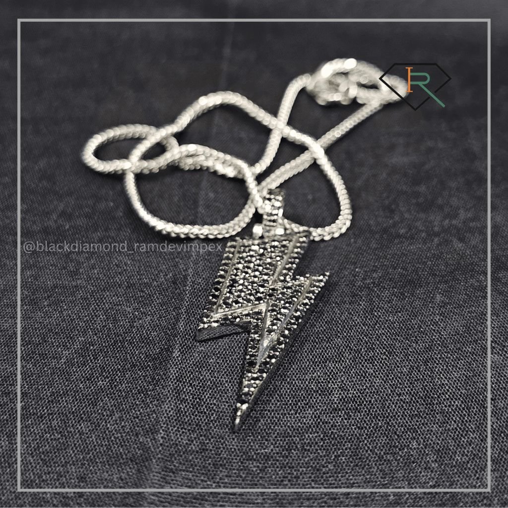 "The Hip-Hop Lightning Pendant Necklace: Symbol of Determination and Courage. A Classic Accessory for Musicians,Perfect for Christmas, Valentine's, and More. Black Trated Diamond Surface, Reflecting Confidence and Courage. Ideal for Hip-Hop Style. Be the Trendsetter. Get Yours Now!"