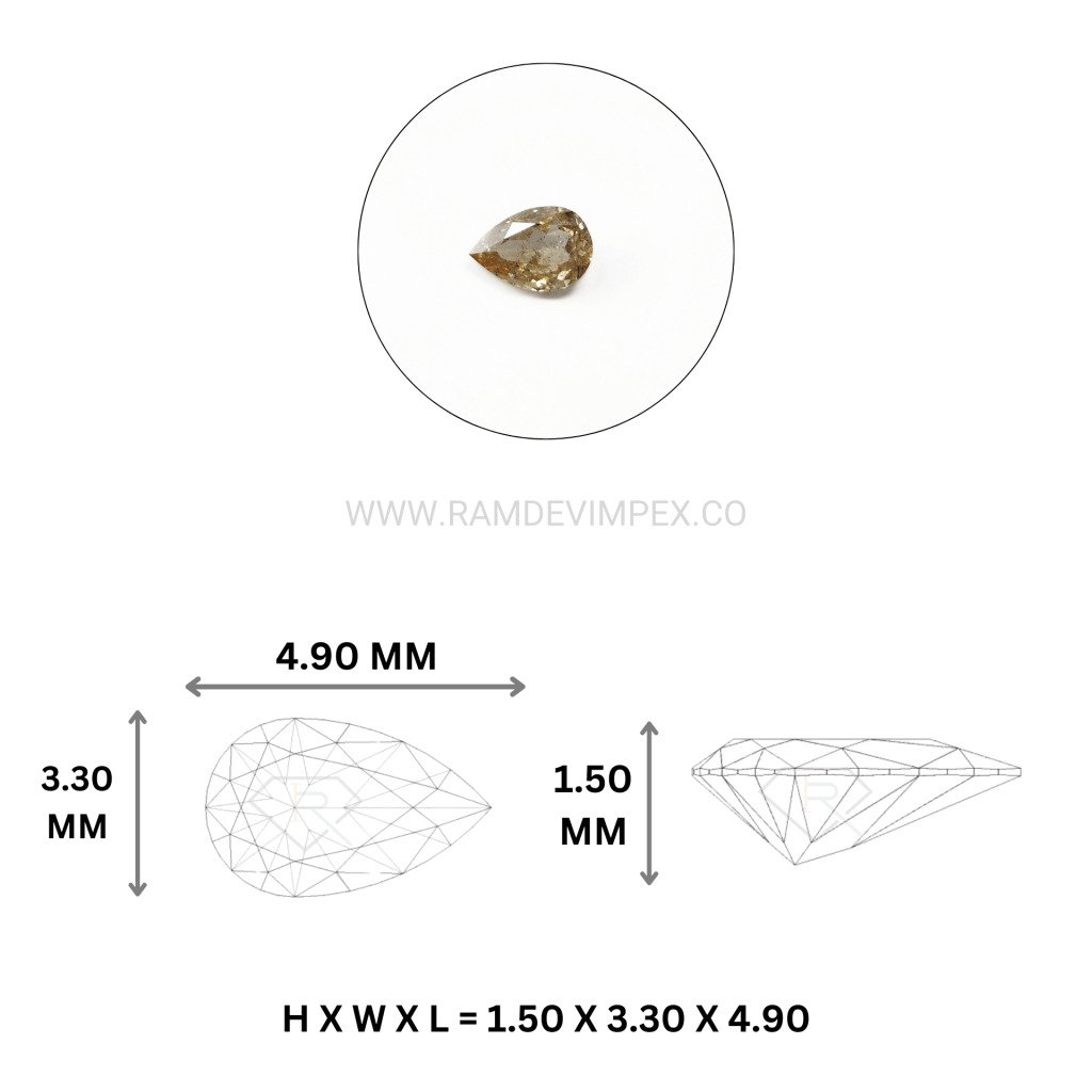 Discover the unique beauty of our natural pear-shaped salt and pepper yellow diamond. Weighing 0.19 carats, this loose gemstone features a captivating blend of earthy hues and distinctive inclusions, making it a perfect choice for a standout piece of jewelry.
